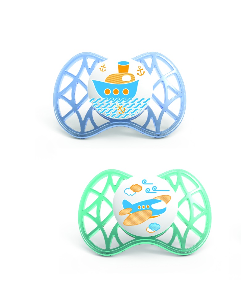 Nuvita Air55 Succhietto Il riflesso della suzione è già presente nel feto durante la gravidanza; dopo la nascita il bambino cerca il seno per alimentarsi o per consolarsi e addormentarsi quando ha soddisfatto il bisogno di mangiare. Il succhietto svolge questo effetto calmante e rilassante per il bambino e molti specialisti ne suggeriscono l’utilizzo specialmente durante il sonno per ridurre il rischio di Sids. Un uso responsabile del succhietto è considerato positivo per la crescita e lo sviluppo psicofisico e può aiutare un più armonico sviluppo della bocca. Nuvita ha studiato una linea di succhietti che segue le età del bambino e le sue esigenze naturali con forme e materiali innovativi, tettarella ortodontica o simmetrica, per privilegiare sempre la salute ed il benessere del bebè. Disegnato per il corretto sviluppo della bocca con tettarella in silicone. Il bottone centrale si illumina al buio ed è facile da trovare senza accendere la luce, nel caso il bambino lo perda nel lettino durante il sonno. Cappuccio protettivo per succhietto progettato sia per mantenere il succhietto pulito sia per poterlo sterilizzare a microonde con la semplice aggiunta di acqua. Confezione: 2 pezzi colori assortiti