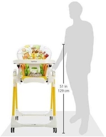 Seggiolone con rivestimento in PVC, chiusura compatta con 4 ruote anti graffio, dotato di schienale reclinabile fino a posizione nanna potendo essere utilizzato come sdraietta fin dalla nascita. Doppio vassoio con porta bicchiere.