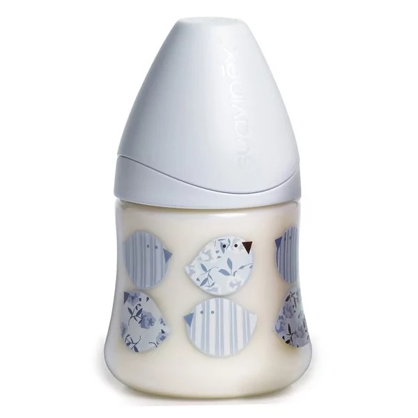Con tettarella rotonda con valvole anticolica che consente di adattarsi al ritmo di suzione del bambino durante la poppata, semplicemente girando il biberon.