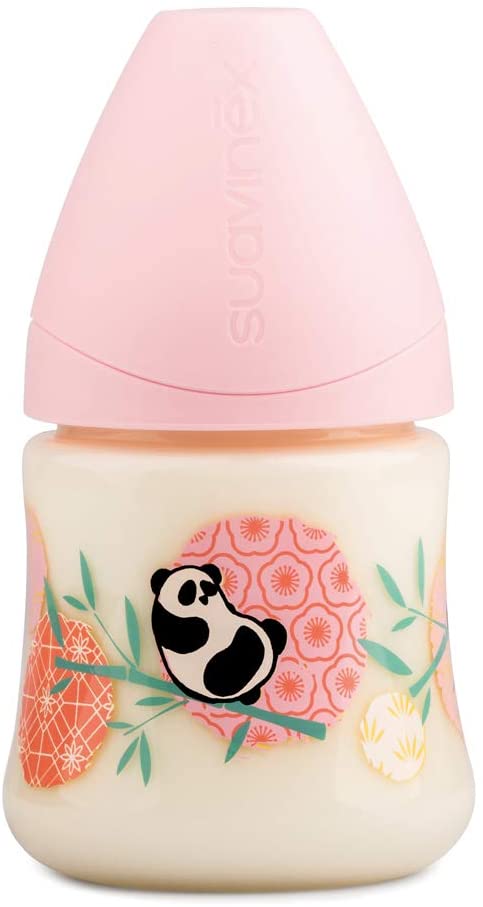 Biberon in polipropilene da 150 ml con tettarella anatomica flusso lento in lattice. da 0-6 mesi.simula la suzione del capezzolo materno
