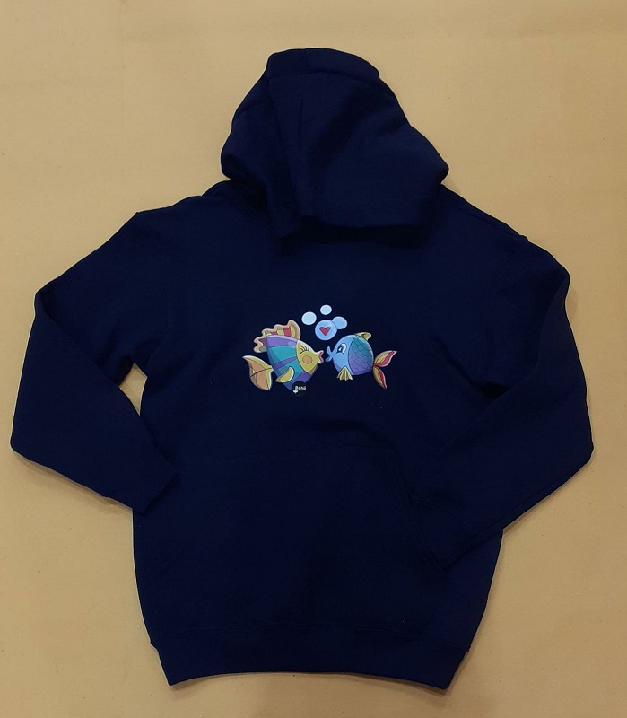 FELPA C/CAPPUCCIO BLU PESCI LOVE TG 9-11