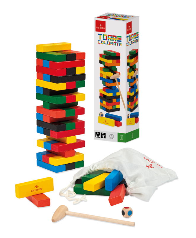 La classica Torre con 3 diverse varianti di gioco, una più entusiasmante dell'altra. Ci vuole abilità e mano ferma per sfilare i pezzi di questa Torre Colorata e risistemarli via via nella sua cima. A mano a mano che la Torre cresce diventa infatti sempre più instabile ed il pericolo di crollo si fa incombente. pezzi 54