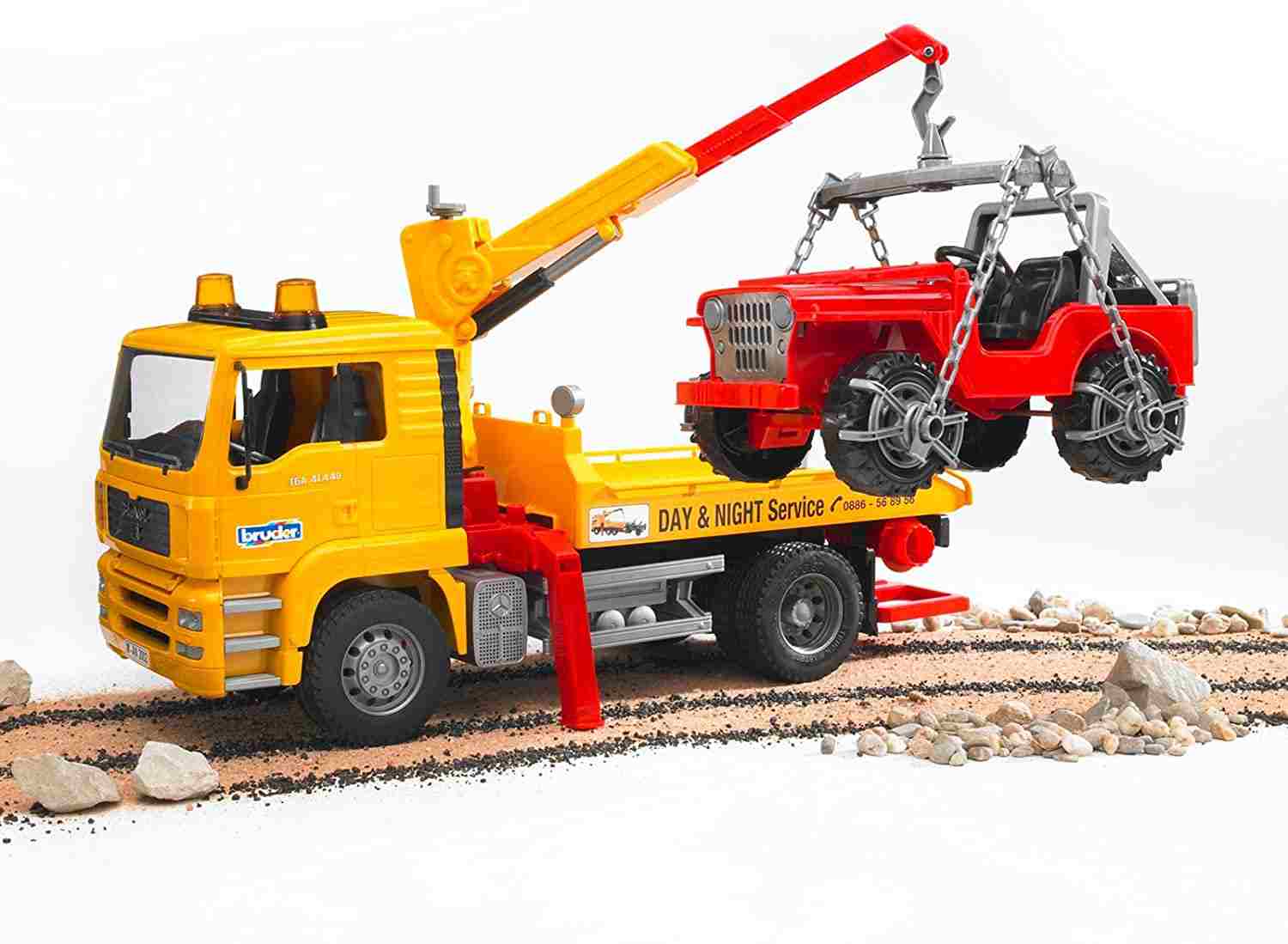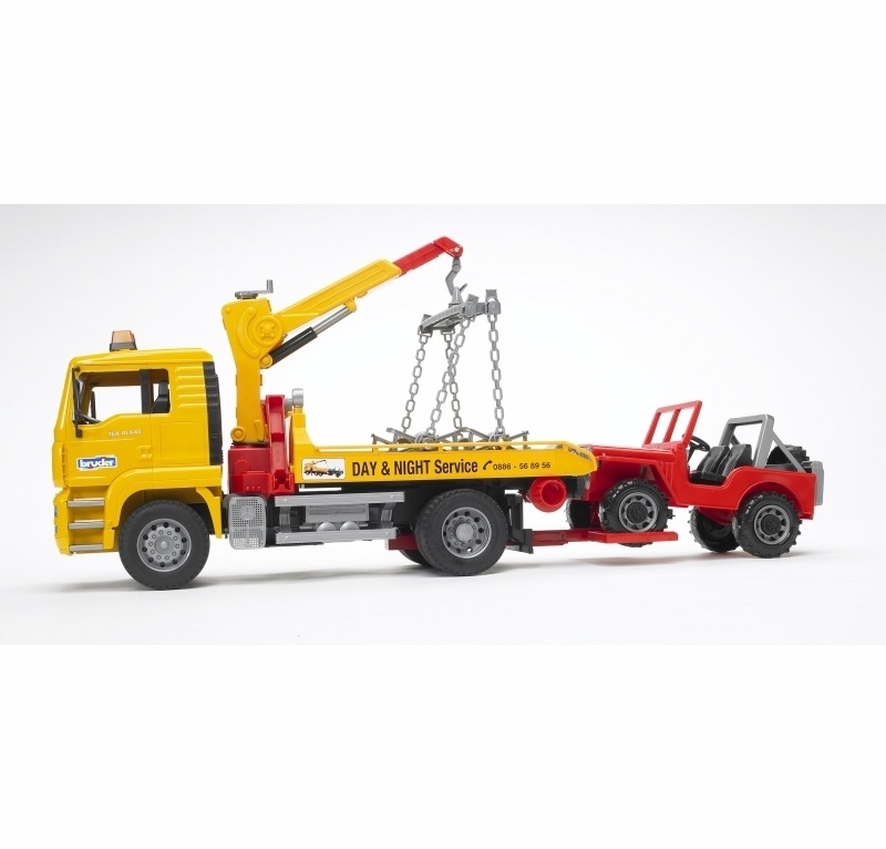 Bruder Camion MAN TGA per il trasporto e rimorchio di Jeep 2750