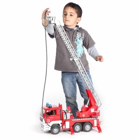 I bambini possono vivere scene emozionanti con questo ingegnoso camion dei pompieri. Il serbatoio integrato può essere riempito d'acqua, che può essere utilizzata in modo giocoso per estinguere l'incendio utilizzando il tubo d'acqua perfettamente funzionante. Una scala estensibile con gabbia di salvataggio, ingegnosi effetti sonori e luminosi e robusti pneumatici rendono realistica l'esperienza di gioco. Quattro cavalletti assicurano stabilità.