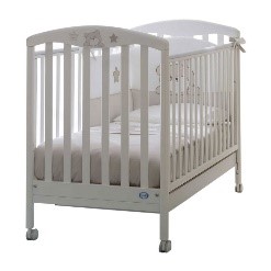 Teo è un lettino dalle linee dolci e moderne adatto a tutti i tipi di arredamento, arricchito da un simpatico decoro.