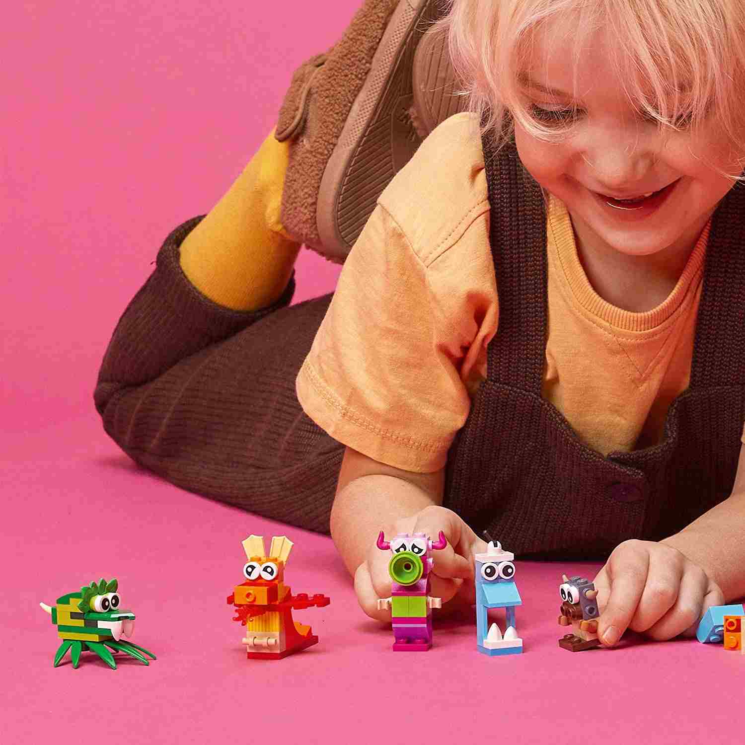 Playset con cui possibile costruire 5 mostri, più tanti altri mattoncini colorati