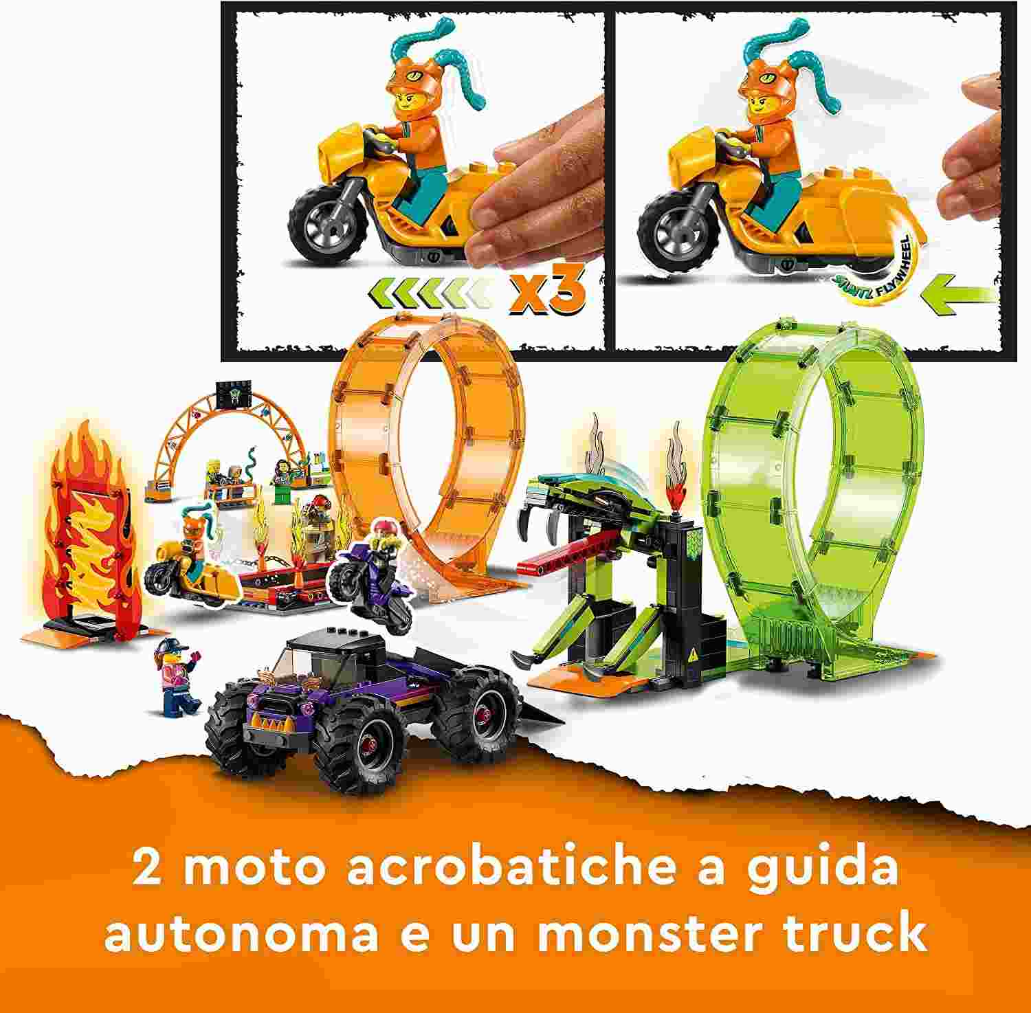 1 Monster Truck, 2 Moto, 7 minifigure e tanti accessori