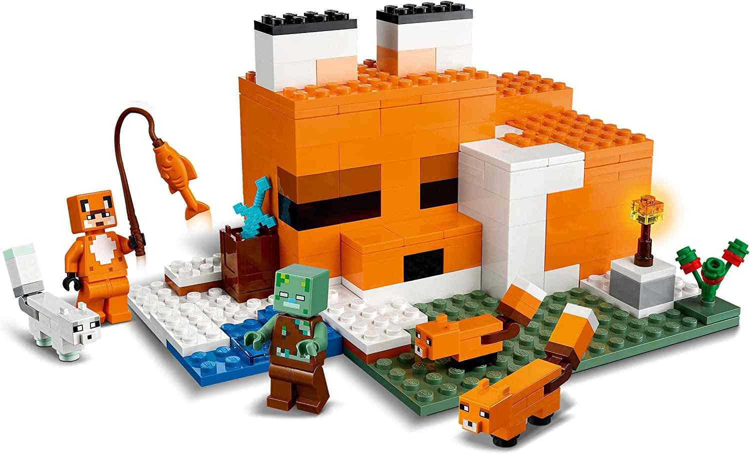 Il Playset include l'iconica figure Minecraft dello zombie emerso; più la volpe con il suo cucciolo, la volpe artica e un personaggio con pelliccia di volpe