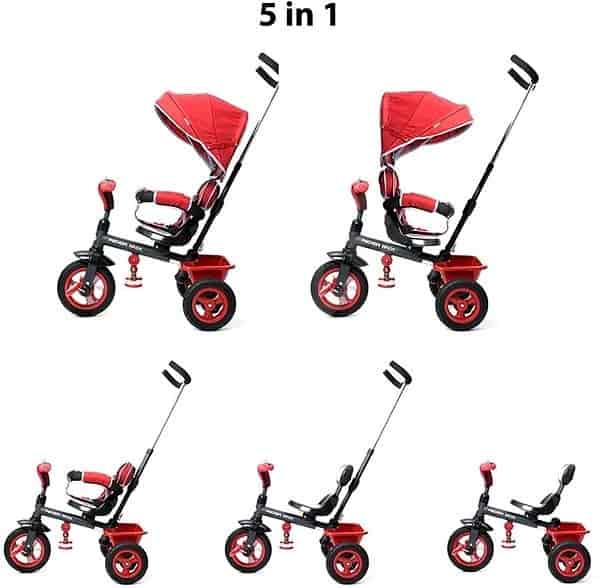 Triciclo rosso fuoco personalizzabile con 5 modalità in 1.