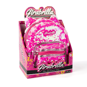 Zainetto Girabrilla con orecchie da gattino, ricoperto da uno strato di paillettes scintillanti e reversibili che cambiano colore quando le accarezzi.
