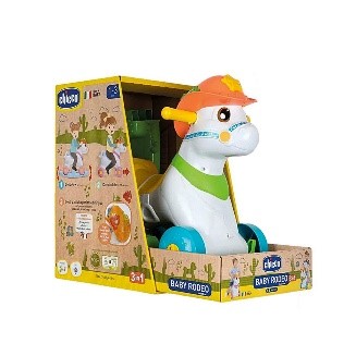 Baby Rodeo & Friends di Chicco è il tenero cavallino Made in Italy in grado di interagire con il tuo bambino in due lingue! Premendo i tasti sul suo cappello, si attiveranno luci e musiche di generi diversi! Ha due modalità di utilizzo: con la base basculante per dondolarsi e avere una maggiore stabilità o senza base per galoppare autonomamente. Adatto per bambini a partire da un anno di età.