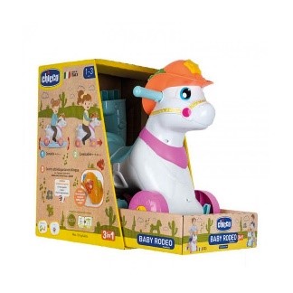 Il centro attività, incorporato nel cappello del cavallo a dondolo, è dotato di pulsanti con cui attivare la funzionalità bilingue e riprodurre generi musicali diversi: rock, jazz e rap. Sviluppa la capacità di movimento e la creatività.