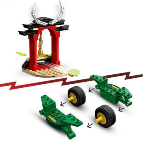 Questo set LEGO Juniors include la potentissima moto giocattolo ninja di Lloyd, con ruote grandi e clip laterale per attaccare le spade giocattolo, un Tempio delle Ossa con shooter, e 2 minifigure dei personaggi LEGO NINJAGO di Jay e del Guardiano delle Ossa, completi di armi. Il set comprende tutto il necessario per dar vita a divertenti avventure, a duelli e a tanti giochi creativi. Questo playset con moto giocattolo LEGO NINJAGO è stato appositamente progettato per offrire ai bambini dai 4 anni in su una straordinaria esperienza di costruzione e di gioco. All’interno della confezione, ogni sacchetto di mattoncini contiene un modellino da costruire e un personaggio; lo Starter Brick incluso fornisce una base parzialmente assemblata che aiuta i bambini a costruire rapidamente la motocicletta giocattolo. Con questo set, i piccoli ninja potranno dedicarsi velocemente alla difesa di NINJAGO City dai loro rivali!