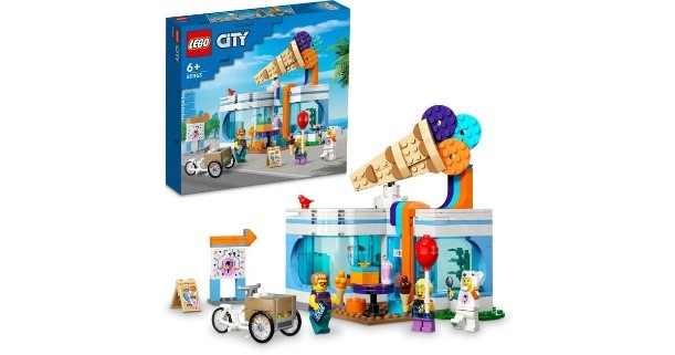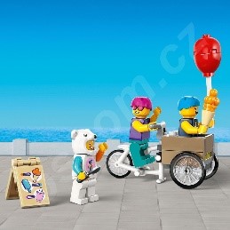 Il set include anche una bici e 3 minifigure, tra cui un venditore con un divertente costume da orso