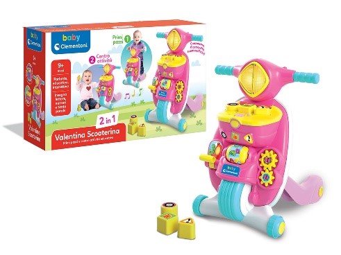 Gioco 2 in 1: è uno scooterino tutto rosa, pensato per accompagnare le bambine durante la fase dei primi passi. E’ un divertente centro attività educativo parlante. Insegna le lettere e i numeri in italiano e in inglese. Aiuta a sviluppare la motricità, il linguaggio, l'immaginazione, la percezione visiva e uditiva; con tanti suoni e allegre canzoncine.