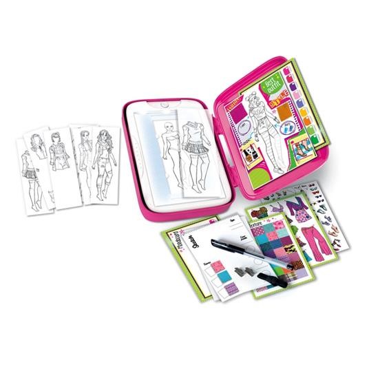 Con il nuovo fashion book ti sembrerà di essere in un vero Ufficio Stile dove creare collezioni esclusive. Grazie al nuovo e modernissimo piano luminoso le aspiranti stiliste potranno ricalcare facilmente tutte le proposte moda. Nel kit anche una penna a china per realizzare i propri bozzetti come delle vere fashion designer! Tanti outfit da ricalcare e nuovi accessori adesivi attacca-stacca. Ideato, progettato e sviluppato in Italia.