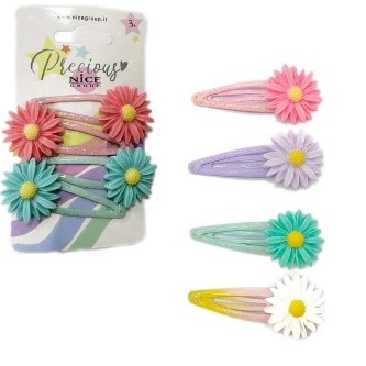 Set di 4 fermagli per capelli. Colorati con fiorellini sono perfetti per le esigenze dei bambini nella vita quotidiana.