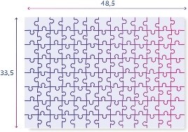 Un puzzle da 104 pezzi, che misura 48,5 x 33,5 cm.