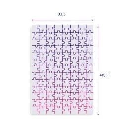 Un puzzle da 104 pezzi, che misura 48,5 x 33,5 cm.