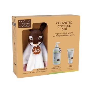 Il Cofanetto Coccole Dirì Fiocchi di Riso offre una cura delicata e completa per la pelle sensibile dei neonati e dei bambini, arricchita con il dolce aroma di talco, garantendo un'esperienza di igiene e coccole. Comprende il detergente Corpo e Capelli, un'originale formulazione che si prende cura della delicata pelle e dei capelli dei più piccoli, la Crema Viso Protettiva che idrata in profondità la pelle delicata del viso dei più piccoli, prevenendo secchezza, arrossamenti e screpolature ed infine il doudou Dirì.
