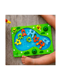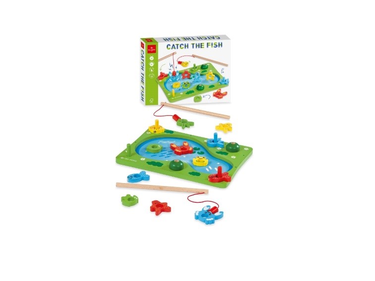Divertimento senza fine ti aspetta con Catch the fish, il gioco di pesca con canne magnetiche. Il vassoio in legno presenta un parco e uno stagno disegnati che cattureranno l'immaginazione dei bambini. I piccoli pescatori potranno mettere alla prova le proprie abilità e divertirsi mentre cercano di catturare i pesci. Il gioco include due canne da pesca magnetiche e dodici pesci colorati che renderanno l'esperienza ancora più avvincente. Ideale per lo sviluppo delle abilità manipolative.
