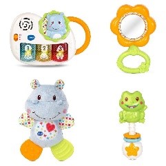 Il mio primo magico cofanetto di V-Tech è un giocattolo perfetto per i bambini e un set completo per accogliere la nascita di ogni bambino! Set completo per neonato con 4 giochi essenziali: peluche, pianoforte, specchio e sonaglino.