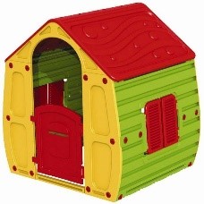 Casetta di colore rosso, giallo e verde realizzata in plastica.