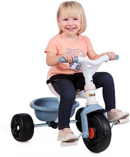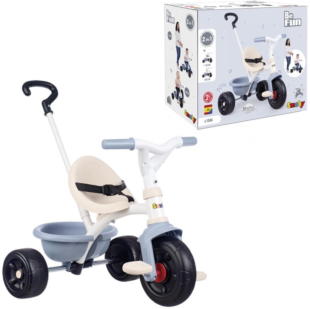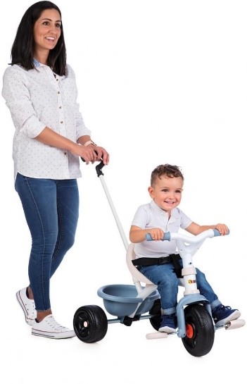 Il triciclo Be Fun Comfort è un triciclo e un passeggino in uno. Grazie alla barra di sicurezza, al sedile avvolgente ergonomico, allimbracatura di sicurezza regolabile e agli ampi poggiapiedi, il bambino si siede comodamente e ben protetto a partire dai 10 mesi. Tramite la barra di spinta a doppio tubo, i genitori possono aiutare con la guida.