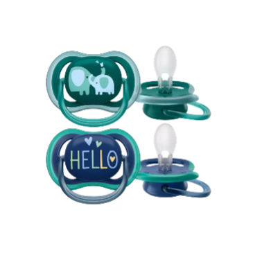 Succhietti in silicone Ultra Air Orthodontic. Succhietti ariosi che calmano e rassicurano i bambini di età superiore a 18 mesi con pelle sensibile rispettando lo sviluppo della bocca.