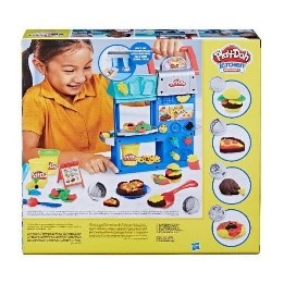 Gli aspiranti chef possono immaginare di gestire il proprio ristorante grazie a questo set da cucina giocattolo per bambini e bambine! Crea, personalizza e condividi le tue fantastiche creazioni di cibo Play-Doh. Crea 2 alimenti finti alla volta: collega 2 stampini e spingi la leva per formare alimenti finti come burger, pizza, pollo o spaghetti!