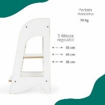 Può essere utilizzata facilmente dai 12 mesi ai 5 anni grazie alle sue 3 altezze regolabili.