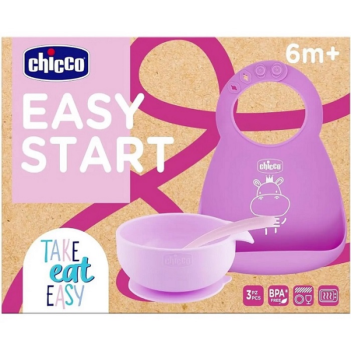 Set Easy Start in silicone, ideale per bambini a partire dai 6 mesi, è particolarmente indicato per facilitare lo svezzamento. Set 3 pezzi: include 1 ciotola, 1 bavaglino, 1 cucchiaio.