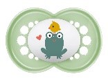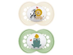Il ciuccio Original è ortodontico e non irrita la pelle. Il ciuccio Original è delicato sulla pelle grazie agli ampi fori di ventilazione e agli incavi della superficie interna, caratteristica esclusiva del design MAM. Il ciuccio Original rispetta i requisiti degli Standard Europei EN 1400.