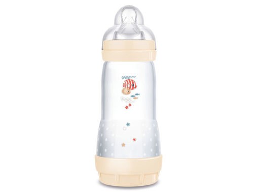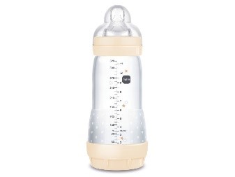 Biberon anticolica da 320 ml con tettarella in silicone misura 3, realizzato con materiali bio-rinnovabili. L'ideale in combinazione con l'allattamento al seno.