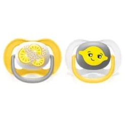 Due morbidi ciucci, progettati per offrire una sensazione naturale per il vostro piccolo. Tettarella realizzata al 100% in silicone per uso alimentare. Dotati di una custodia da viaggio utilizzabile per la sterilizzazione in microonde.