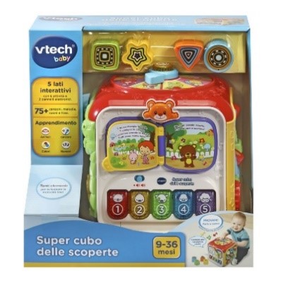 Il super cubo delle scoperte contiene un libro interattivo con una pagina da girare per ascoltare divertenti canzoni. 5 tasti luminosi del pianoforte per scoprire i numeri, i colori, gli animali e ascoltare orecchiabili melodie. Una lancetta luminosa da far ruotare sul quadrante per scoprire 8 animali e gli oggetti a loro associati. Forme a incastro: 4 blocchi colorati inclusi. Forme e ingranaggi, animali da toccare e un orsetto da premere per attivare allegre canzoni.10 melodie e 4 canzoni.
