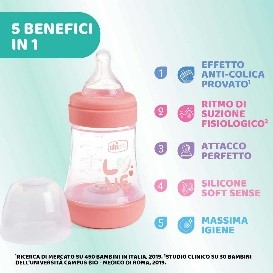 PERFECT 5 è il biberon biofunzionale che intuisce e si adatta in modo naturale al ritmo di suzione di ogni bambino. Rivoluzionario anti-colica grazie all’abbinamento tra la tettarella Physio e l’innovativa Equilibrium Membrane; supportano ritmo ed intensità fisiologici del bambino, aiutando a prevenire l’ingestione dell’aria.