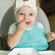 È colorato e allegro! È realizzato al 100% in silicone alimentare, un materiale sicuro e durevole, naturalmente ipoallergenico, inodore e antimacchia.