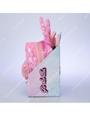 Zainetto scintillante con dolcissime orecchie da coniglietto, rivestito da uno strato di paillettes scintillanti e reversibili. Le paillettes cambiano colore quando le accarezzi Dotato di una capiente tasca frontale, curato nei dettagli anche quelli in materiale luccicante. Perfetto per il tempo libero. Colore rosa