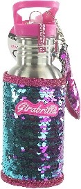 Bottiglia Ecologica 300 ML in Acciaio con un scintillante rivestimento rimovibile di paillettes.