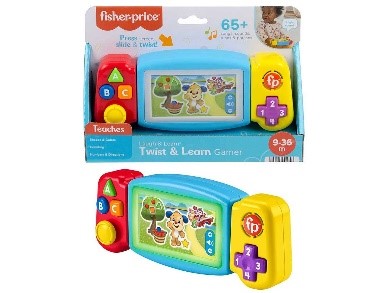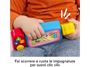 Questo giocattolo interattivo per l'apprendimento somiglia proprio a un dispositivo di gioco portatile per adulti, ma con funzioni dedicate ai bambini, come i personaggi ridi e impara® sullo schermo, 2 impugnature 'controller' che ruotano e scorrono, oltre a tanti pulsanti divertenti da premere.