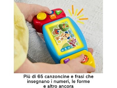 Mentre 'giocano', i piccoli attivano luci multicolore, canzoni e frasi educative che insegnano a contare da 1 a 10, oltre a forme e colori. Usa il pulsante a forma di globo per selezionare la lingua: inglese, italiano, portoghese o spagnolo