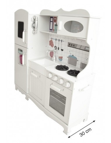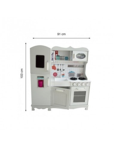 Cucina Grande. Cucina in legno con forno , frigo, lavello, macchina dell’acqua, telefono, tanti ripiani e scomparti per il cibo. Completa di accessori (pentole,mestoli, ecc.), con luci fornelli effetto fuoco. Cucina grande per un divertimento immenso!!! Il bambino imparerà altresì a gestire gli spazi e a mantenere l’ ordine, cosa che nel tempo gli sarà utile in moltissime altre situazioni. Con l’aiuto dei genitori iniziano a riconoscere e a identificare la frutta, la verdura, gli accessori e impareranno ben presto a riconoscere i vari oggetti e colori. La nostra cucina è realizzata in legno, materiale naturale che è sicuramente più sicuro e adatto ai piccoli.
