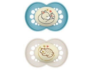 Il ciuccio ortodontico Original Night è delicato sulla pelle grazie agli ampi fori di ventilazione e agli incavi della superficie interna, caratteristica esclusiva del design MAM. Il ciuccio si illumina al buio e può essere facilmente ritrovato. Realizzato con materiali bio-rinnovabili.