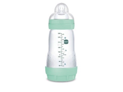 Biberon anticolica da 260 ml con tettarella in silicone misura 2, realizzato con materiali bio-rinnovabili. Facile da riempire e pulire grazie all’ampia apertura.