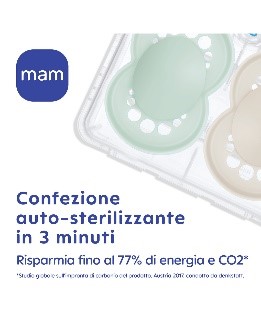 Venduto in una comoda scatola di sterilizzazione e trasporto, per sterilizzare il ciuccio nel microonde in modo pratico e veloce