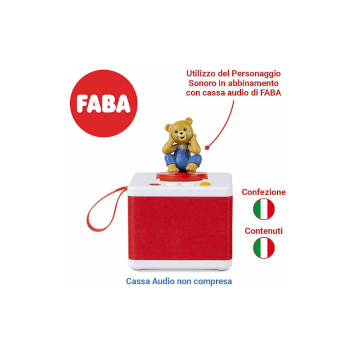 FABA è un dispositivo audio che permette ai bambini di ascoltare storie, canzoni, favole e filastrocche. Il Personaggio Sonoro Teddy cullerà bambini e bambine verso sogni fatati, grazie alle più belle filastrocche della buonanotte, scritte dal famoso illustratore Tony Wolf. Le filastrocche della buonanotte alimentano la fantasia dei più piccoli, per aiutarli a trascorrere notti serene e rilassate. Cassa audio non compresa.