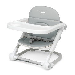 Lift si adatta e si aggancia a vari tipi di sedia da adulto grazie alle pratiche cinghie, è molto pratico da utilizzare. Quando è chiuso sta in piedi da solo, occupa pochissimo spazio ed è leggero da trasportare nella comoda borsa.