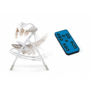 Si può utilizzare anche come sdraietta a dondolo. Dotata di telecomando per attivare a distanza il movimento della seduta e azionare le melodie musicali, con volume regolabile.