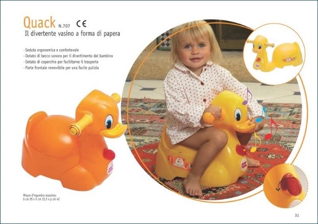 Vasino papero, colori assortiti. Seduta ergonomica. Il vasino è dotato di coperchio.